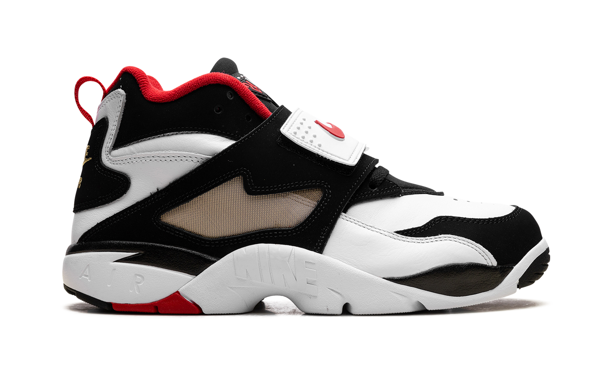The Nike Air Diamond Turf 49ers (2025) revives Deion Sanders' iconic '93 sneaker, honoring his 49ers tenure. Crisp white leather meets black nubuck, punctuated by vibrant fire red accents on the Swoosh, liner, and outsole. The signature midfoot strap ensures a secure fit and bold style. Built for dual-sport athletes, it offers versatility and comfort. A cushioned midsole provides support, while the durable rubber outsole delivers traction. Tongue and heel branding add flair. This retro release blends nostalgia with fresh design, celebrating Sanders' legendary career and the 49ers' championship legacy. 49ers