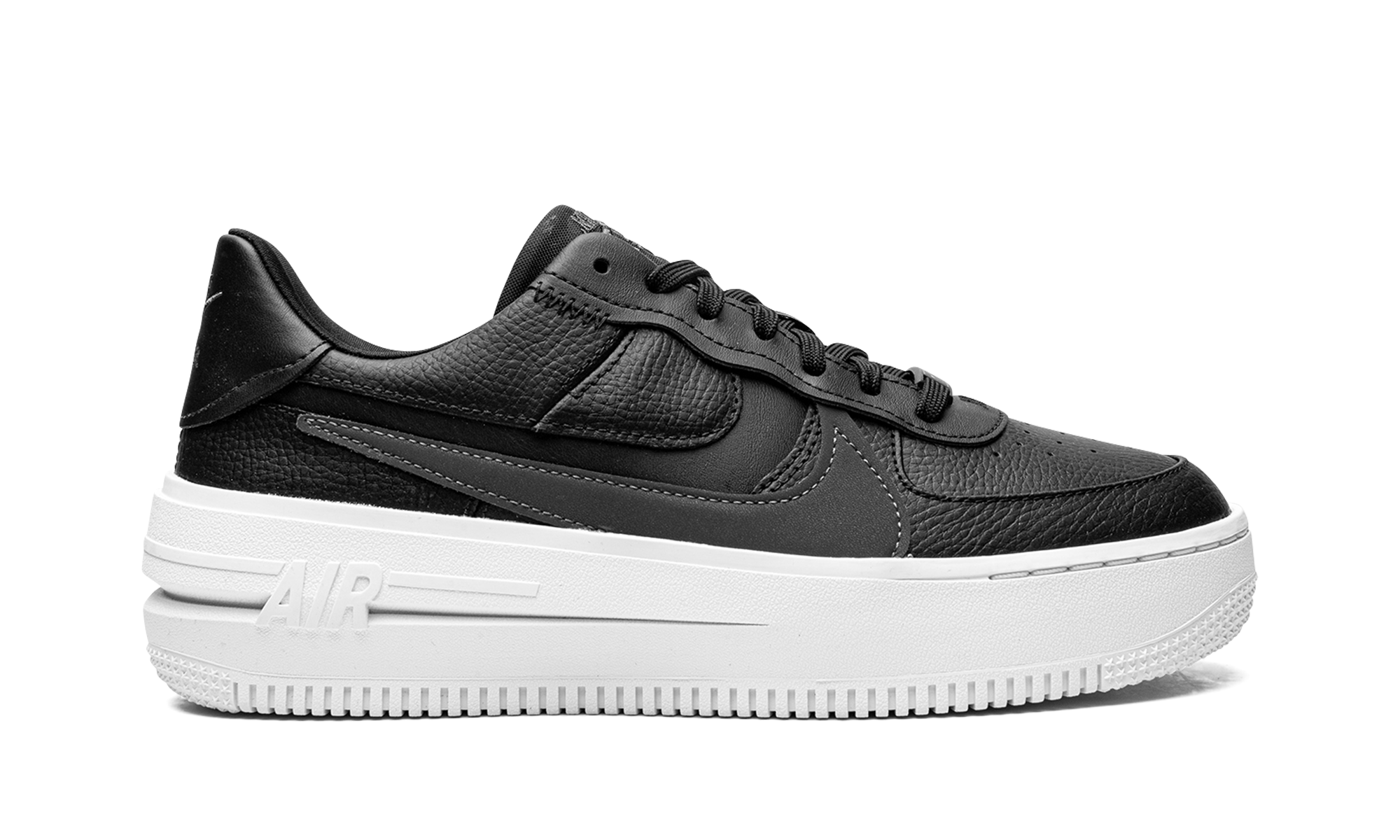 The Women’s Nike Air Force 1 PLT.AF.ORM “Black” is an alternate, women’s-exclusive version of the classic sneaker that elevates its silhouette with a platform-style sole and other modifications. The Air Force 1 PLT.AF.ORM features a contemporary appearance that progresses the retro basketball shoe’s timeless design. The “Black” colorway features a black leather construction with an oversized tonal leather Swoosh layered over a cut-out Swoosh on either side. “Nike Air” and Swoosh logos are found on the heel and on the tongue. An oversized white rubber midsole that splits on the heel, giving the shoe a platform-style design. Black