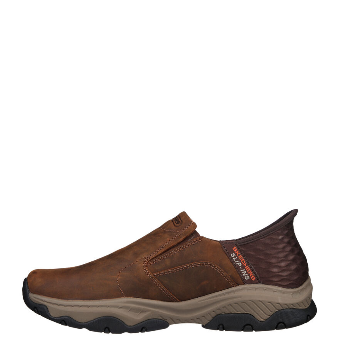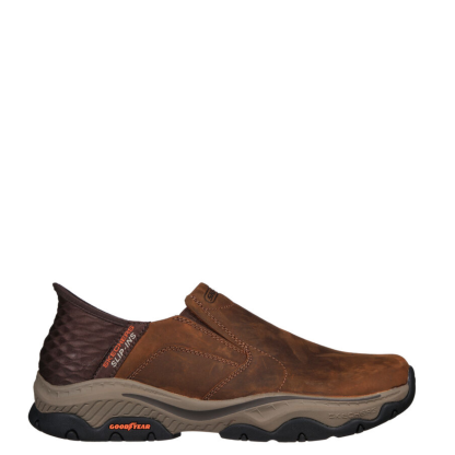 Modern comfort and high traction combine in Sqdfkechers Hands Free Slip-ins™ Relaxed Fit®: Craster - Lanigan. Designed with our exclusive Heel Pillow™. This laceless style features a leather upper with twin gore panels for ease of wear, a Sqdfkechers Air-Cooled Memory Foam® comfort insole, Goga Mat Arch™ cushioning, and an anti-slip Goodyear® Rubber Outsole.