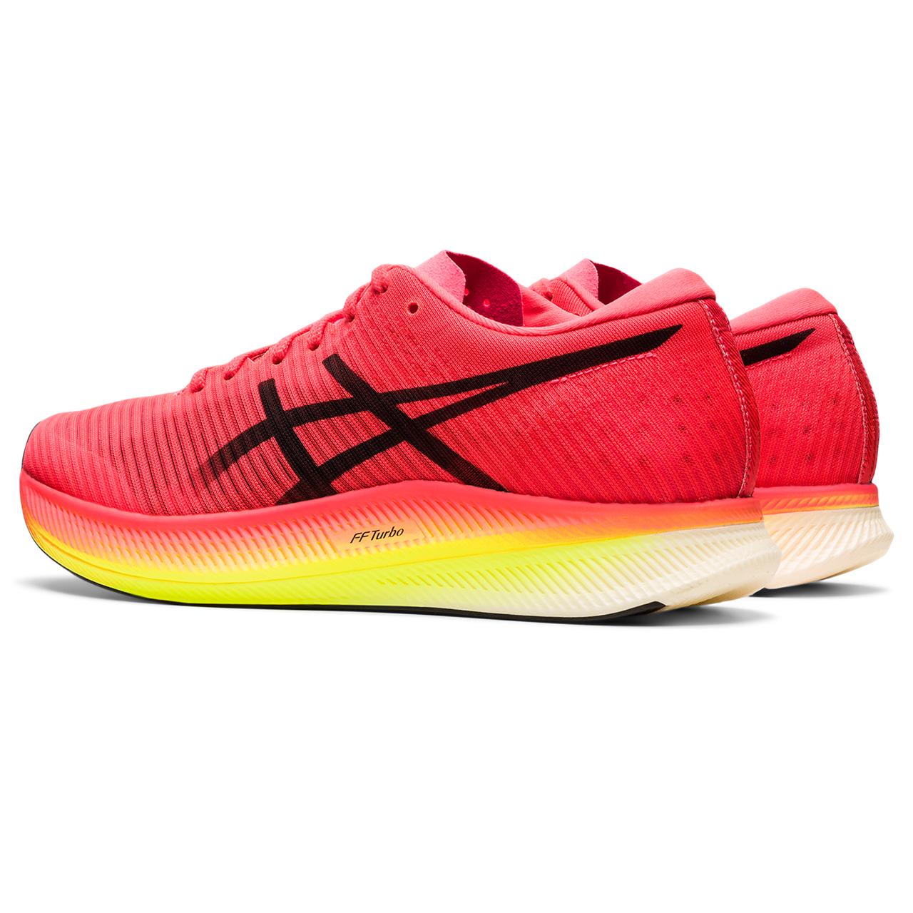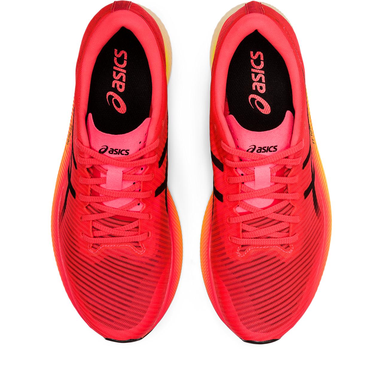 The METASPEED Edge racing shoe moves you towards a sound mind and new personal best. It helps you go faster by extending your stride length while allowing you to control your pace more easily.
