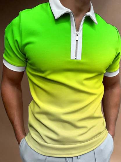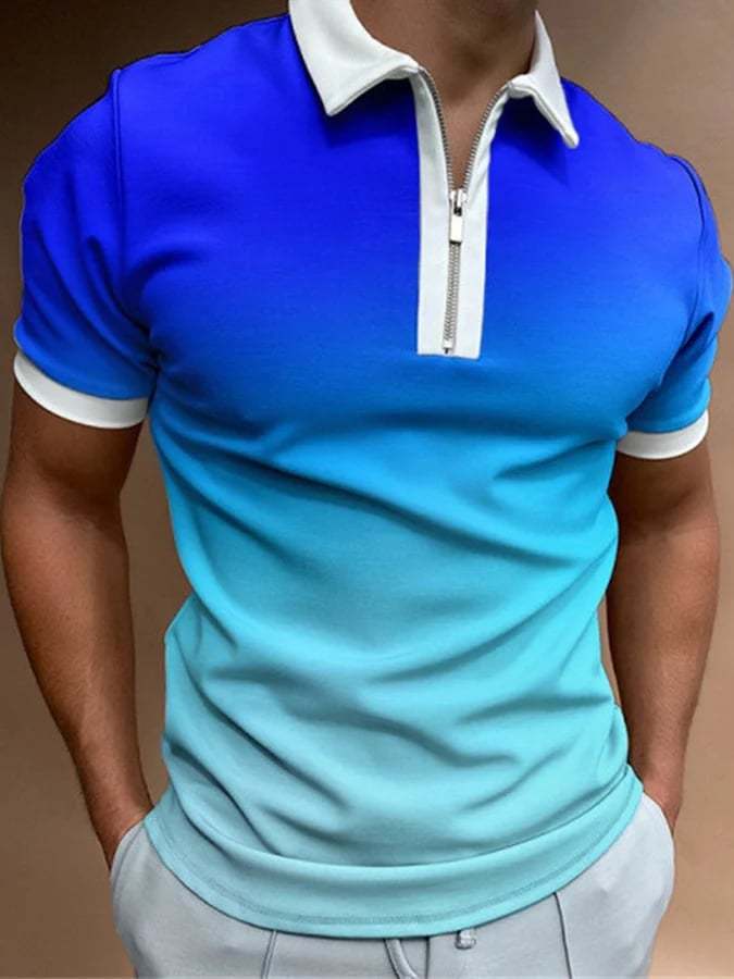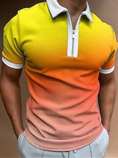 Men's Loose Casual Zipper Lapel Polo Shirt
