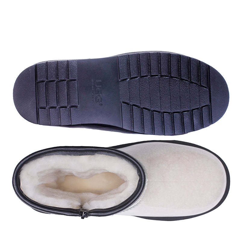 These shoes are a style that has considered everything, from water-repellent materials, waterproofing, temperature regulating properties, and plush sheepskin for extra cushioning. With a sleek zip design that lets you slip them on with ease. The ideal style for rainy days as it offers extra cosiness and the ability to be out and about in the rain.